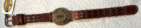 Fossil womans classic vintage Sundial Watch style SD7631 with rare brown woven Fossil band.