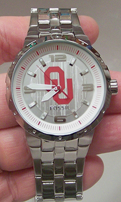 Oklahoma Sooners Fossil Three Hand Large logo watch.